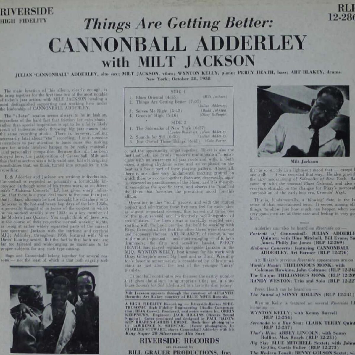 Cannonball Adderley with Milt Jackson – Things Are Getting Better, LP 1958 US